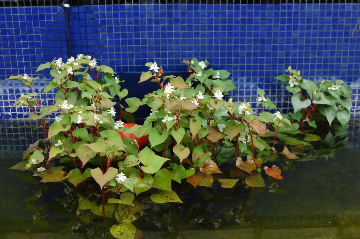Висадивши рослину поряд з водоймою, ви одночасно внесете родзинку в дизайн водного саду, а також зведете догляд за хауттюйній до мінімуму.