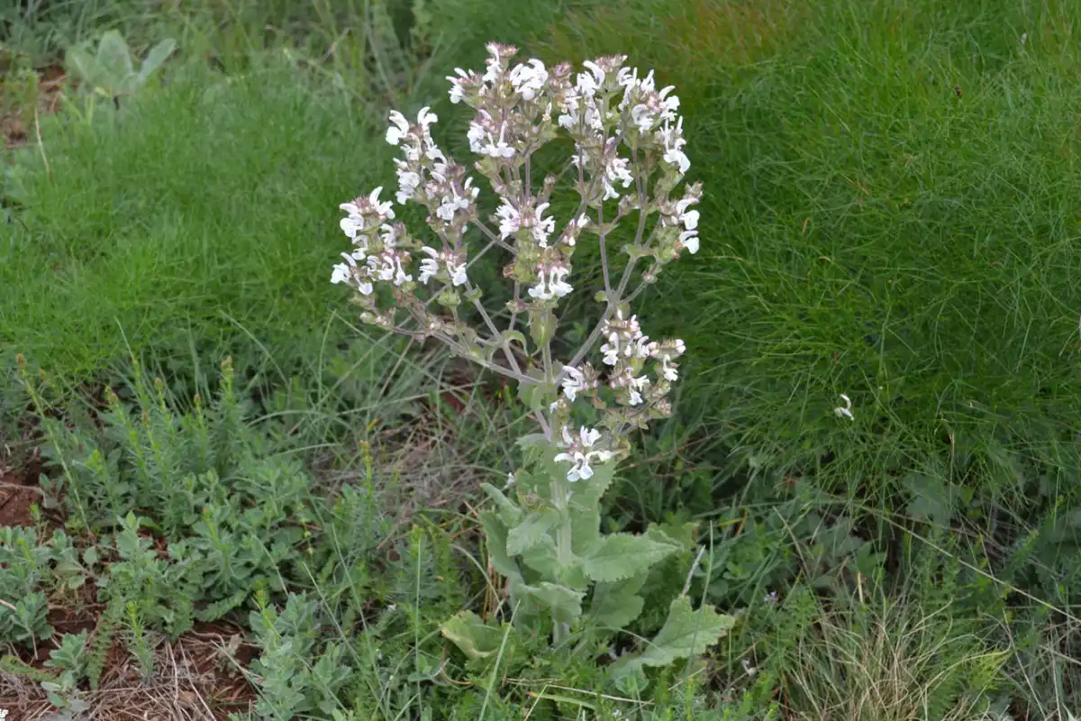 Шавлія ефіопська (Salvia aethiopis)що тримається кілька особняком. Дворічник за природою, що дико росте від Білгородської області і далі на південь, тяжіючи до степової місцевості. Цей вид має унікальну розетку листя, що виростає в перший сезон. Листя велике, до 25 см, з городчастим або крупнозубчастим краєм. Вся рослина опушена білими волосками і виглядає сизуватим. Якщо перезимує, наступного року виросте значне канделяброве суцвіття з білими квітками в мутовках. Хороша пряність та ліки. Як всі степовики вимагає відносної сухості, сонця та простору.
