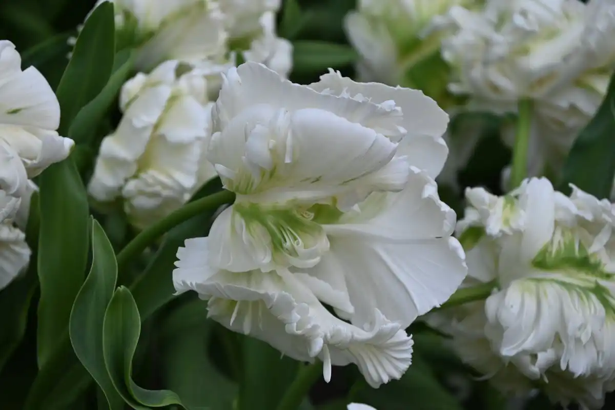 Квіти сорту «Вайт Ребел» (Tulipa 'White Rebel') ніби зійшли з картини епохи Бароко, і, крім зовнішнього вигляду, дивують солодким ароматом.