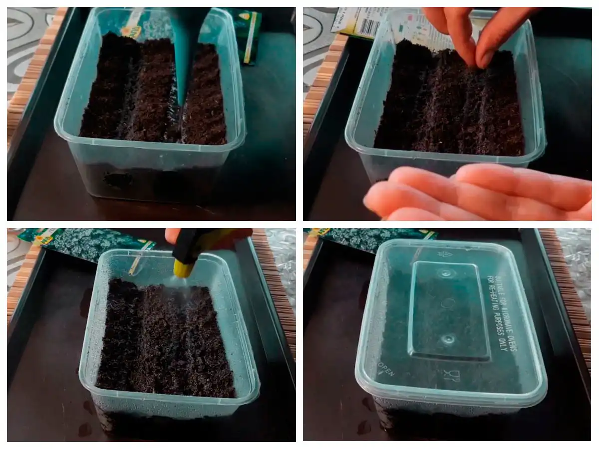 Сійте насіння на глибину 3 мм у лотки з якісним ґрунтом для вирощування розсади.