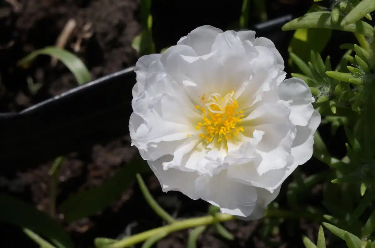 Портулак "Happy Trails White". Це прекрасний сорт, що стелиться, з добре розгалуженими кущами, що стеляться, які виробляють великі напівмахрові квітки білого кольору. Він відмінно підходить для кошиків та контейнерів на повному сонці та виростає до 20-25 см у висоту.