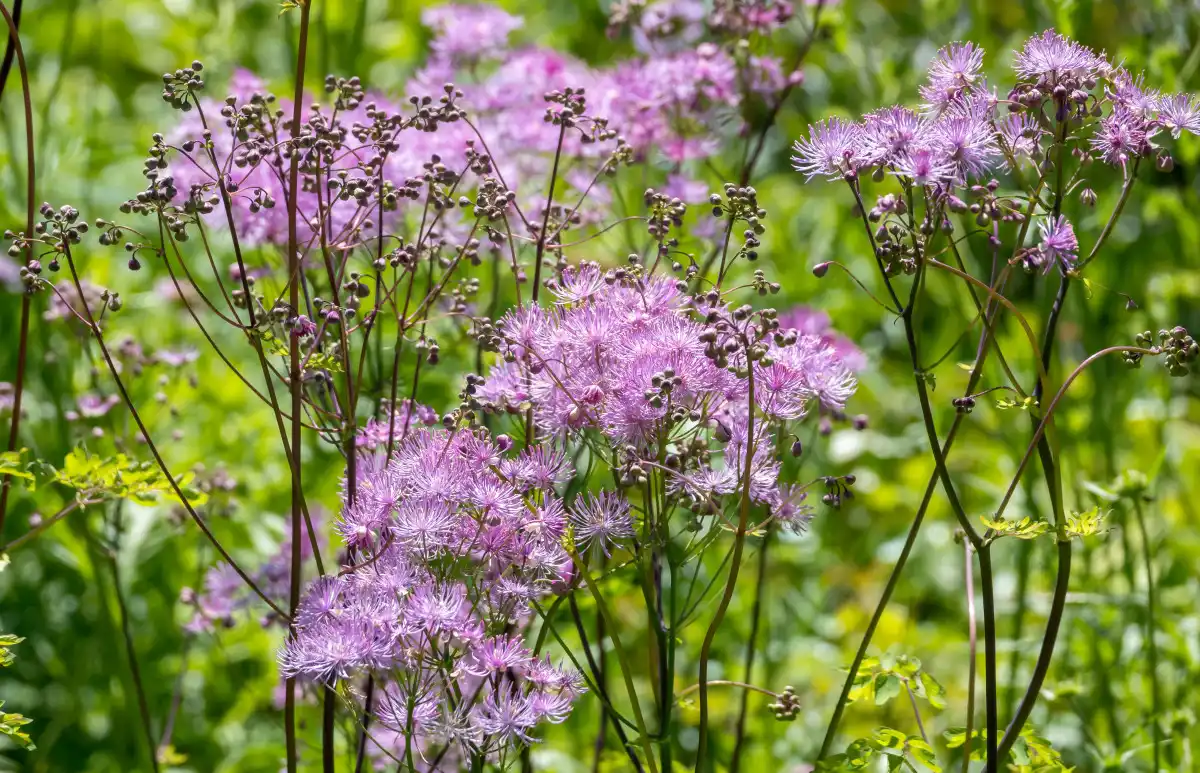 Василистник водозбористовий (Thalictrum aquilegifolium) має рожево-лілові квітки. Він виростає від 60 до 90 см у висоту та стійкий у зонах з 5 по 7.