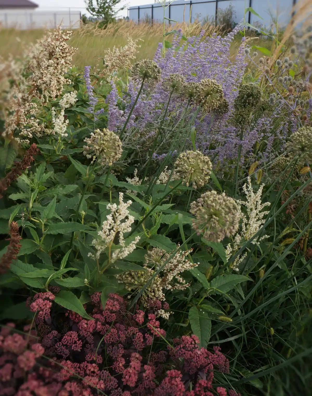 Також прекрасними багаторічними партнерами української шавлії, які приваблюють метеликів та комах-запилювачів, стануть посконник (Eupatorium maculatum), гаура (Gaura lindheimeri), геленіум осінній (Helenium Autumale), синьоголовник (Eryngium yuccifolium) та золотарник (Solidago rugosa), ехінацея.