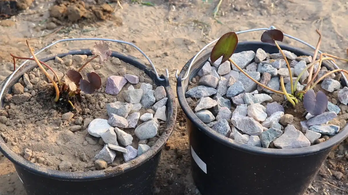 Кореневища німфей розростаються не вглиб, а вшир. Тому для посадки потрібно вибирати широкі ємності з матеріалів, що не окислюються і не гниють: