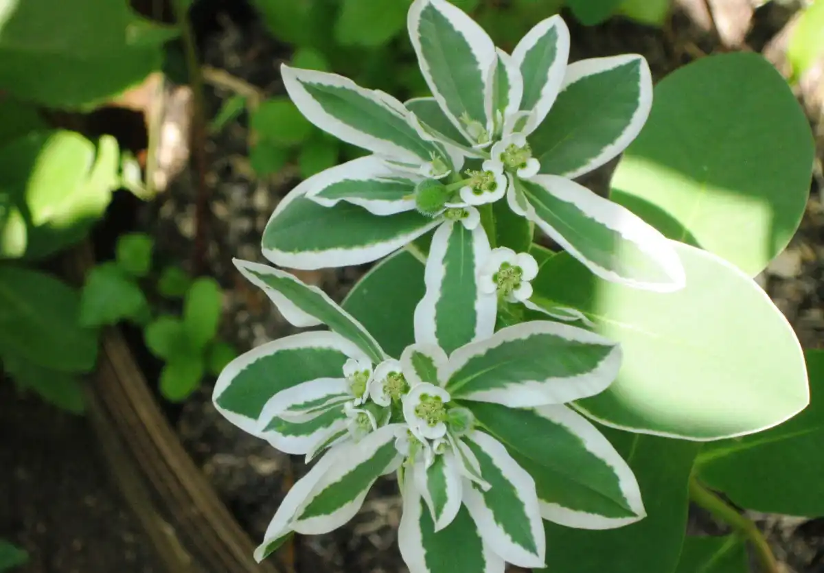 Еуфорбія маргінату (Euphorbia marginata) – так молочай облямований називається мовою латини. Виростаючи на свіжому повітрі, чагарник є однорічником. Хоча будинки його тримають як багаторічник.