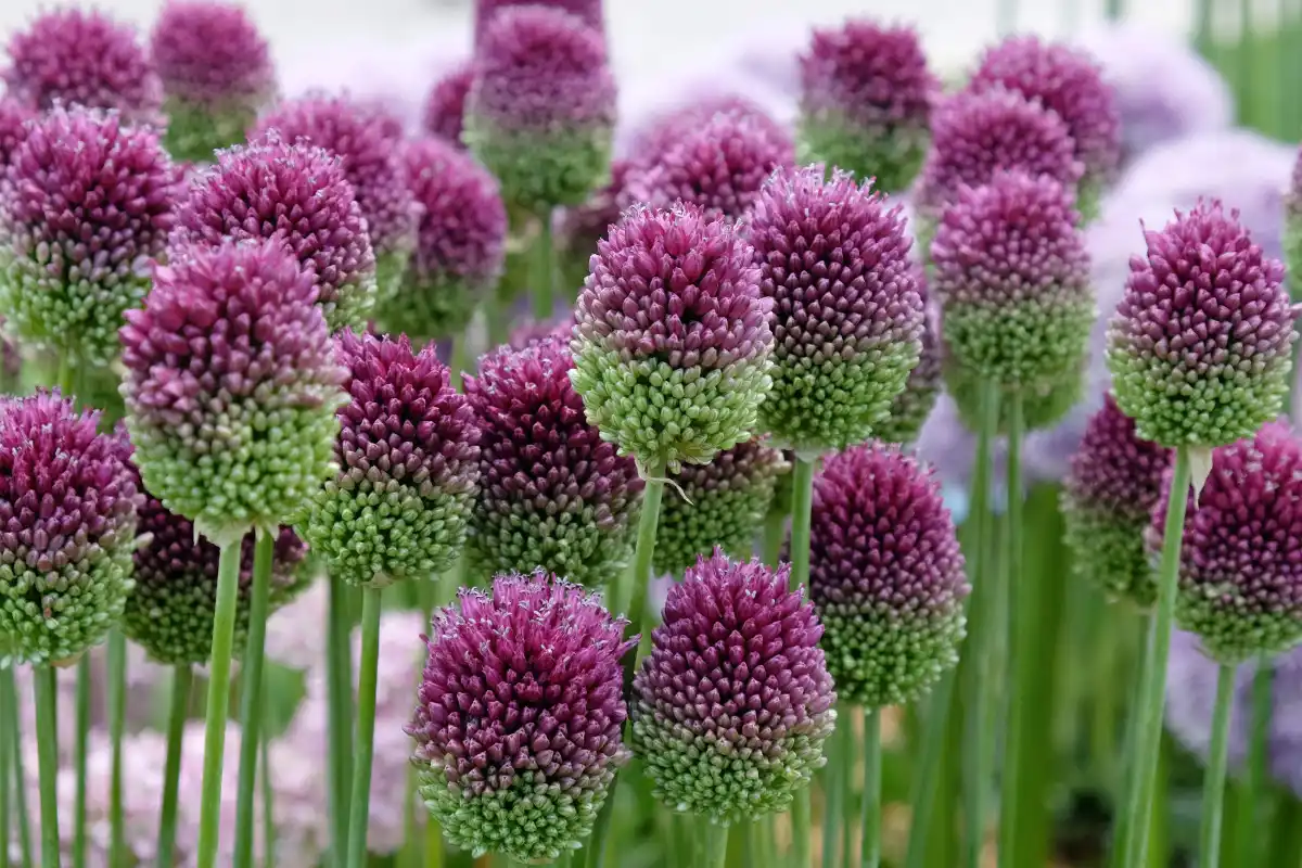 Гігантські фіолетові квітучі кулі цього чудового аліуму - ідеальний спосіб привнести колір і структуру в сад у період між навесні та влітку. Ці високі аліуми досягають висоти майже 1 м і мають міцні міцні стебла, що підтримують великі кулясті суцвіття (до 25 сантиметрів в діаметрі), що складаються з безлічі квіток від темно-лавандового до сріблясто-фіолетового кольору. Вони також приваблюють безліч бджіл та метеликів.