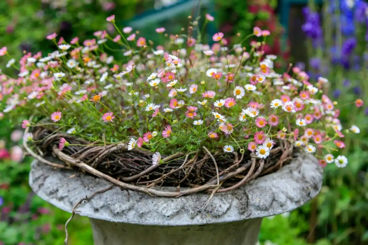 Увійшов у моду разом з підвісними кашпо дрібнолепестником Карвінським (Erigeron karvinskianus), уродженець Центральної Америки. так з червня по жовтень. Хороший не тільки в підвісних кашпо, але і на альпійській гірці, і в гравійному садку, і на підпірній стінці.