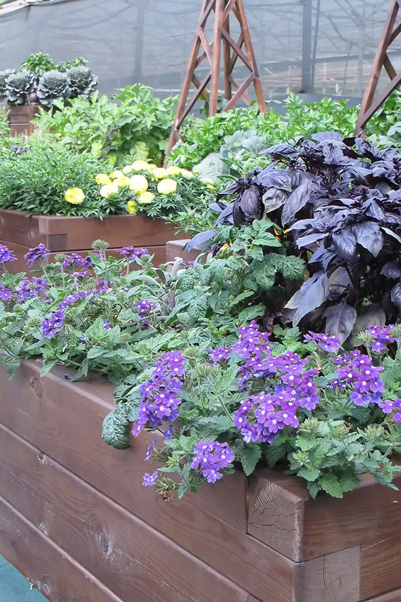 Як уже було сказано вище, головною відмінністю декоративного городу є можливість поєднувати на єдиному просторі посадку утилітарних і декоративних культур, при цьому подібне поєднання найчастіше носить не тільки естетичний, а й практичний характер. Наприклад, висаджуючи поряд з огірками чорнобривці тонколисті, ми отримуємо не тільки гарну композицію, але й перешкоджаємо розвитку на плодах та листі борошнистої роси. Цибуля і морква добре посадити разом, оскільки вони захищають один одного від морквяної та цибульної мухи. А якщо до них у композицію додати пурпурний базилік, вийде дуже оригінальне поєднання кольорів.