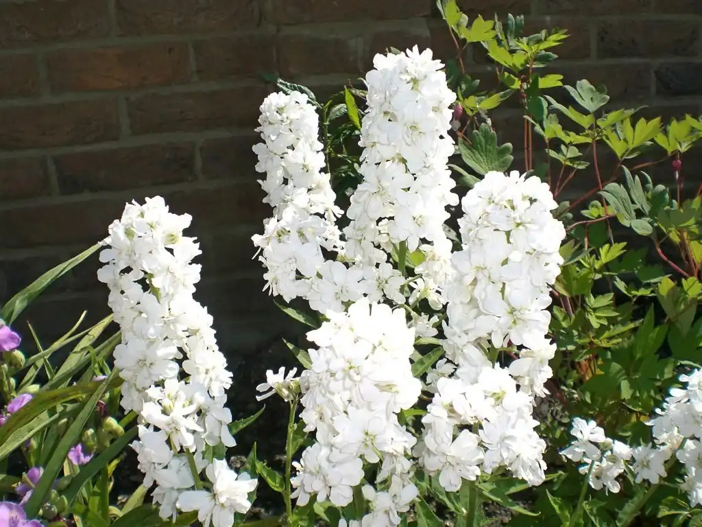 гілки переважно прості, в кистях, але менш щільних, ніж у флоксу. Селекціонерами вже відібрано і махрові форми: purpurea plena і аlba plenа. Аромат помітний у ясний сонячний день, у рази він посилюється увечері. А також перед дощем та у сиру похмуру погоду. Дуже приємний. На мій нюх зовсім не фіалковий. Цвітіння - з травня по липень, розетка листя симпатично виглядає весь сезон.