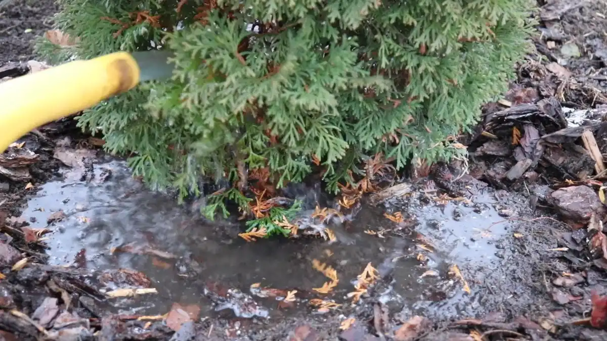 Незалежно від віку, будь-яка туя потребує вологозарядного поливу. Це один із обов'язкових етапів підготовки хвойної рослини до зими. Зволожений ґрунт краще проводить тепло та захищає кореневу систему від впливу холоду. Крім того, гілки, що наситить вологу, не будуть сильно висушені морозами протягом зими. Проводиться вологозарядний полив пізно восени - незадовго до настання перших легких морозів, коли вдень температура повітря знаходиться в межах +3°С. Орієнтиром стануть плодові дерева. Якщо на них вже масово опало листя, то можна приступати до осіннього поливу туй. При цьому не важливо, дощова осінь видалася чи ні, осінню вологозарядну процедуру все одно проводиться.