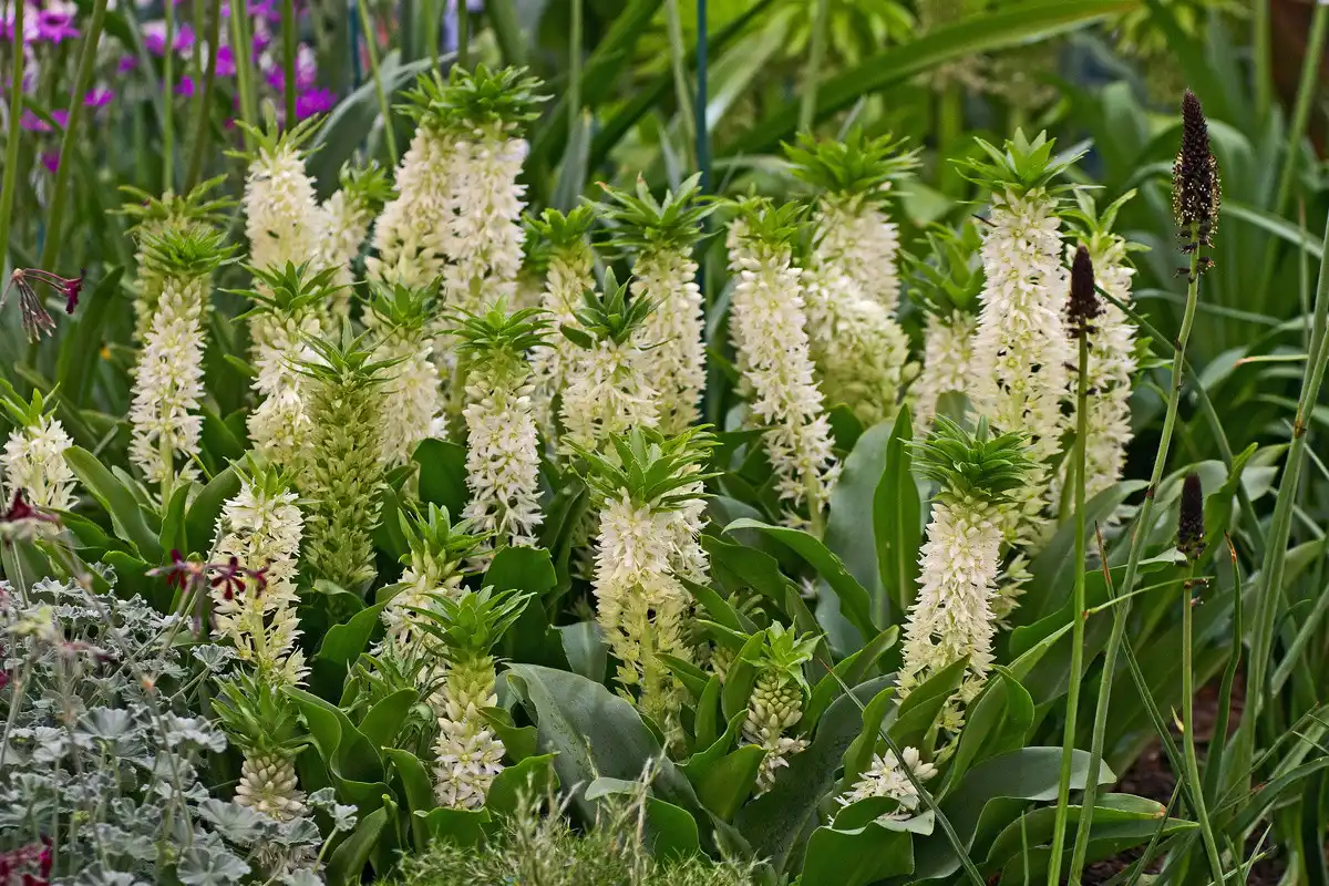 Найвищий — евкоміс гігантський, або гігантська ананасова лілія (Eucomis pallidiflora), Суцвіття в нього може досягати 1,8 м-коду. Квіти від білого до зеленого забарвлення.