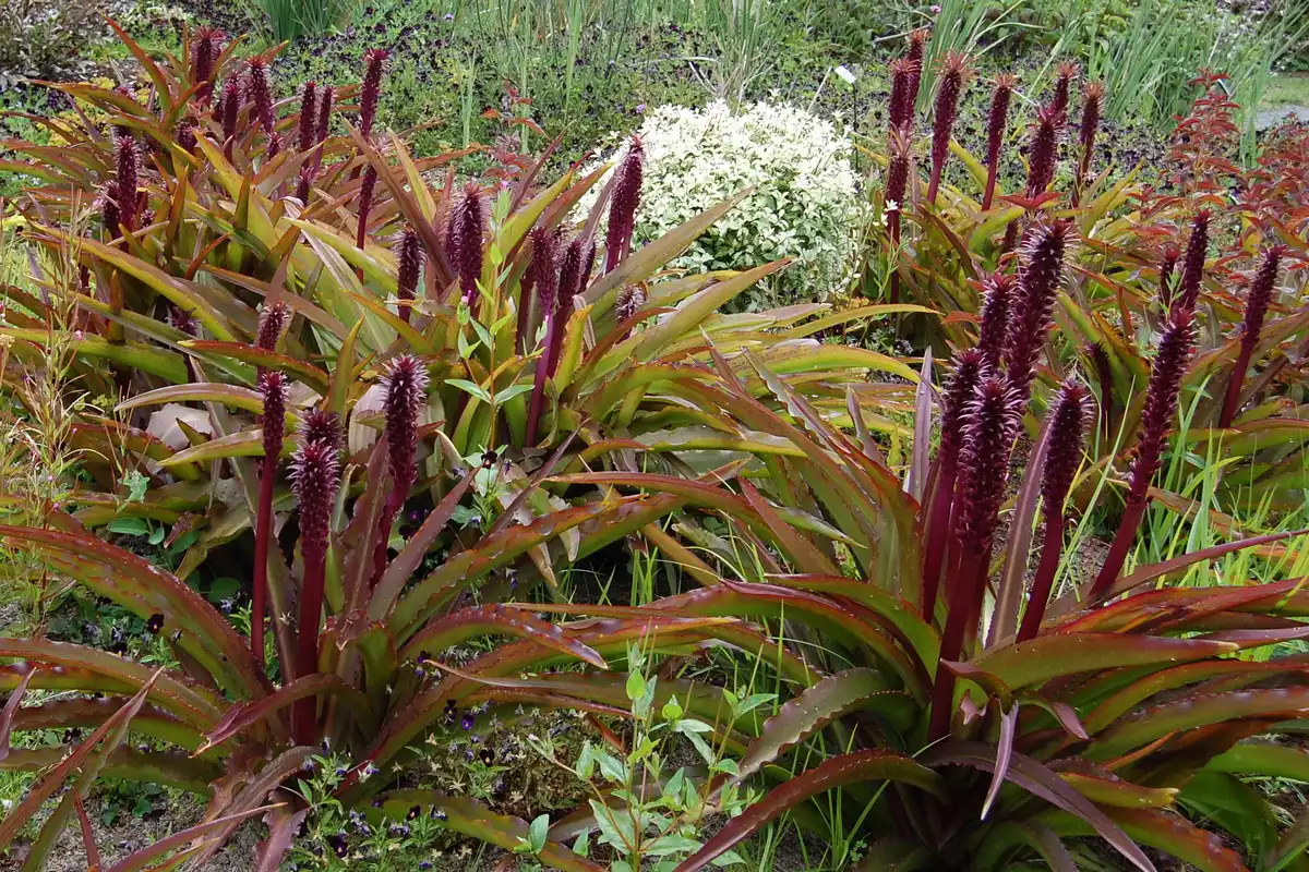 Рідкісний поки що, але симпатичний евкоміс червоностебельний (Eucomis purpureicaulis) відрізняється пурпурно-червоним «чубком», при цьому листочки оцвітини окантовані зеленим.
