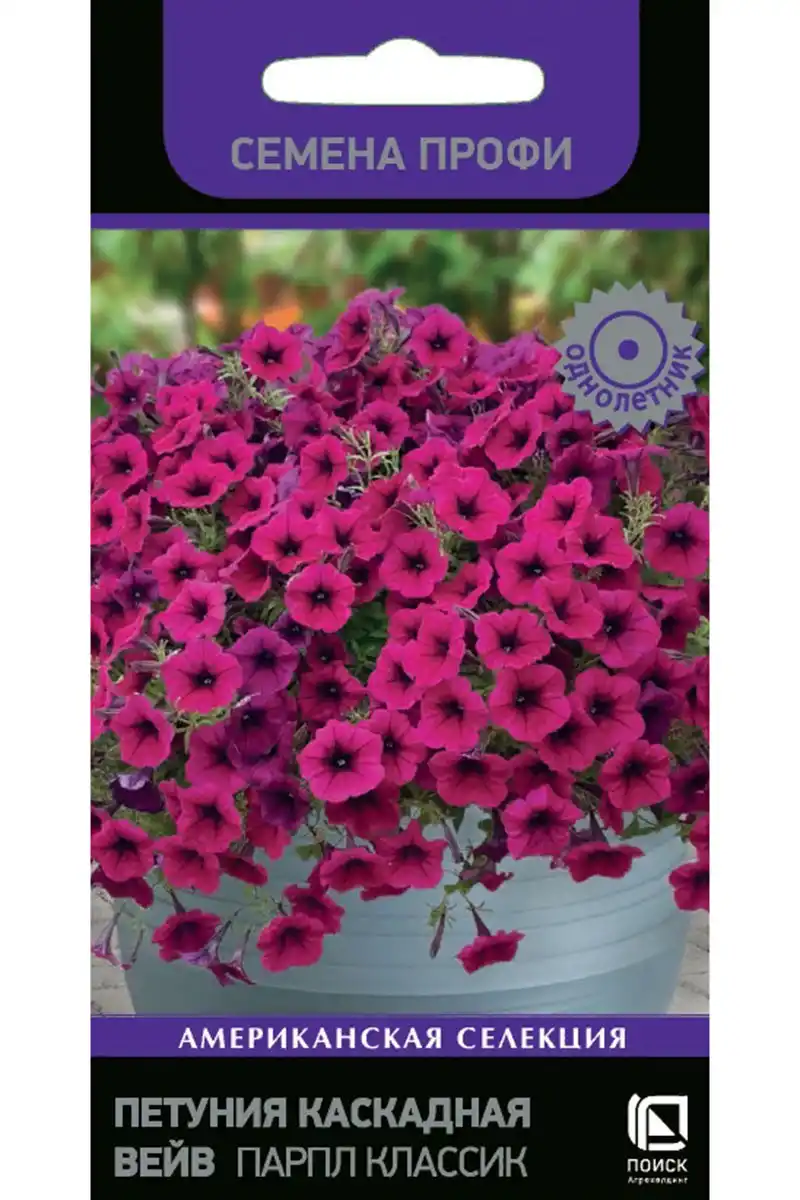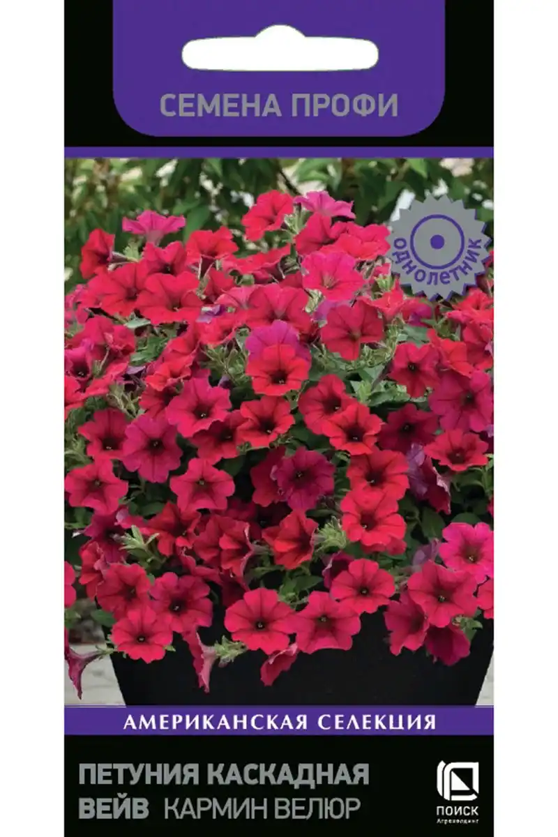 Петунія каскадна «Вейв»: «Кармін Велюр», «Парпл Класік- це яскравий каскад з великими квітками! Ампельна петунія, яка може використовуватися як ґрунтопокривна рослина за рахунок габітуса, що стелиться. Довжина пагонів – 90-120 см. Великі квіти діаметром 5-6 см формуються по всій довжині пагона. Рясне та тривале цвітіння. Стійка до негоди. Підходить для ландшафтного дизайну та висадки у великі вазони.