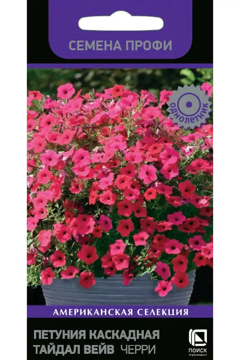 Петунія каскадна «Тайдал Вейв»: «Парпл», «Черрі», «Ред ВелюрНайвищий гібрид серед каскадних петуній! Висота рослини – 40-50 см, довжина пагонів – до 1,5 м. Розмір квітки – 5-5,5 див. вирощування як ґрунтопокривна рослина – застилає щільним килимом великі площі.