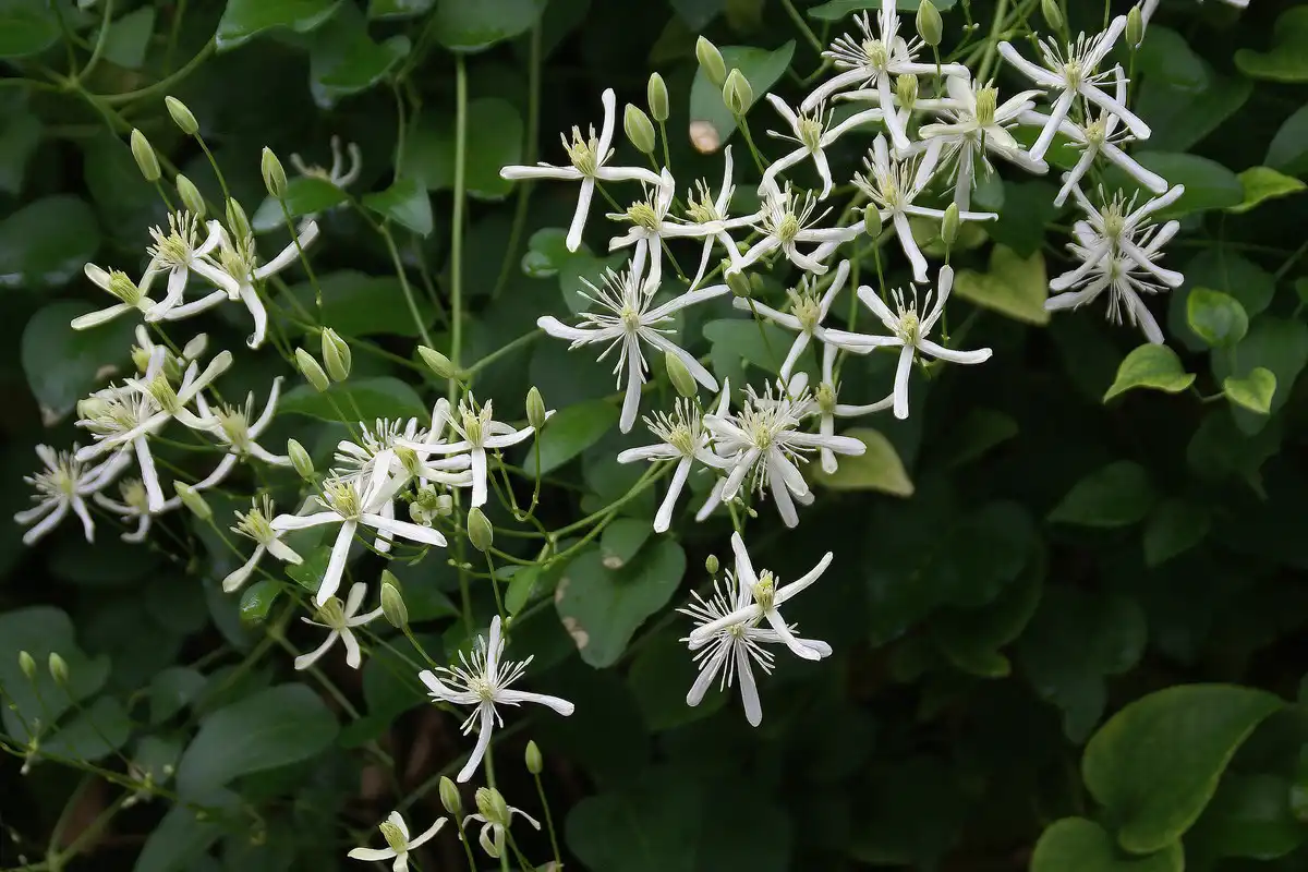 Клематис пекучий (Clematis flammula) - сильна багаторічна ліана з блискучим темно-зеленим листям. Наприкінці літа і восени на ньому з'являються маленькі ароматні білі квітки у формі зірочки, за якими йдуть пухнасті насінні голівки. Ця потужна ліана ідеально підходить для вирощування у великому саду.