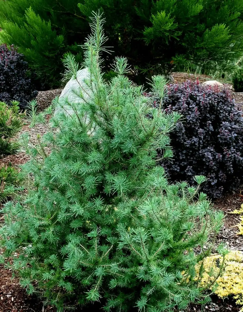 - Модрина «Ньюпорт Бьюті» (Newport Beauty) виведена в 1988 р. в США. Мініатюрний сорт, що має в 10 років висоту менше 30 см. Крона округла і щільна блакитна.