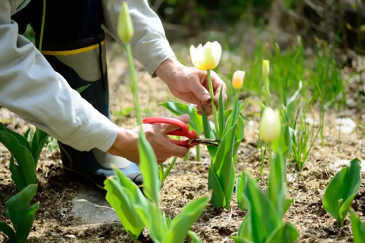 Як і для багатьох інших цибулинних рослин, тюльпанам необхідно дати в'янути без втручання, чекаючи, поки листя пожовкне і висохне. Саме з листя «годуються» цибулини. І якщо видаляти їх зеленими заради акуратного виду квітника або зрізати квітконоси з численним листям, ви позбавите цибулину життєво важливих ресурсів.