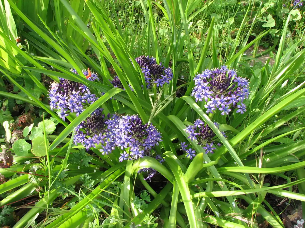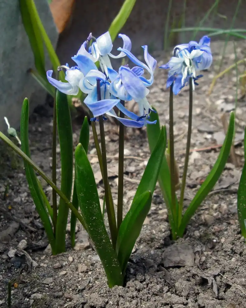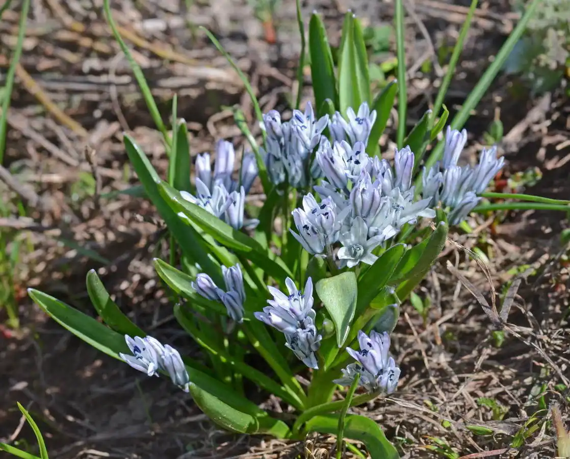 Проліск бухарський (Scilla bucharica) цвіте трохи пізніше, має гарний небесно-блакитний колір. Квітконос несе від 3 до 10 квіток, куртинки виглядають ніжними хмаринками.