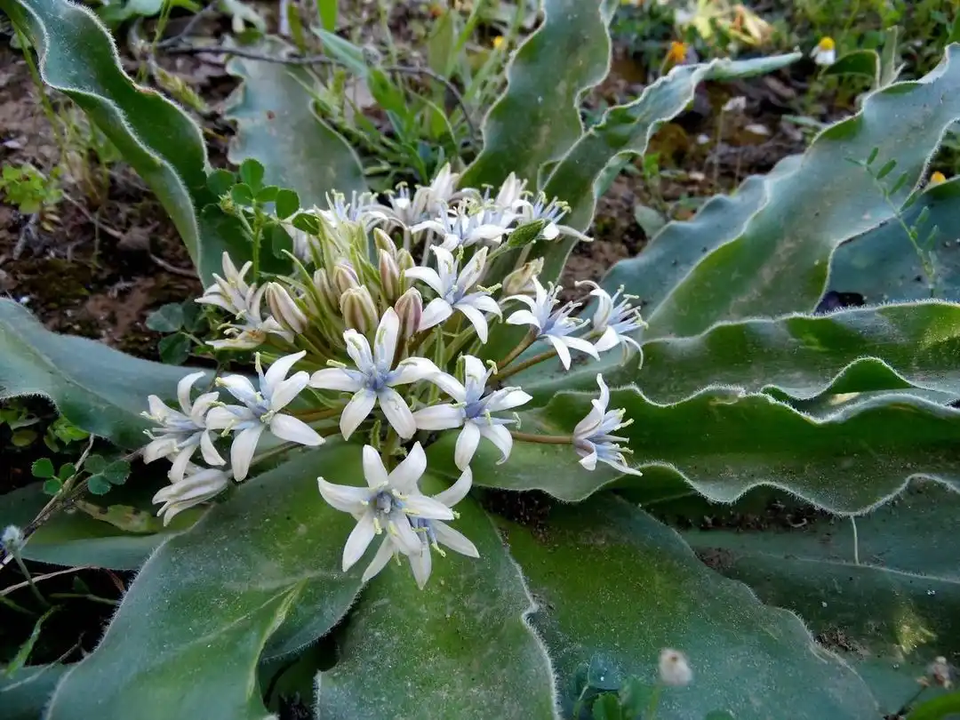Дуже теплолюбнапроліск димартіно (Scilla dimartinoi) являє собою квітуча кулька, що лежить на землі, з дрібних блідо-блакитних квіточок. Але це підійде тільки для кімнатного вирощування. Холодно їй у нас.