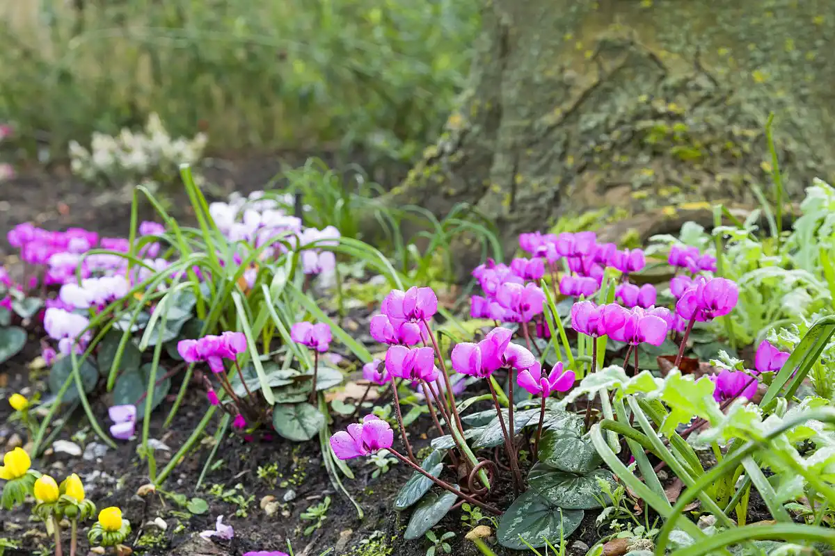 Незважаючи на статус цикламенів як осінньої прикраси саду, кілька диких видів та один культурний цвітуть наприкінці березня та квітні, варто лише зійти снігу.цикламен коський (Cyclamen coum).