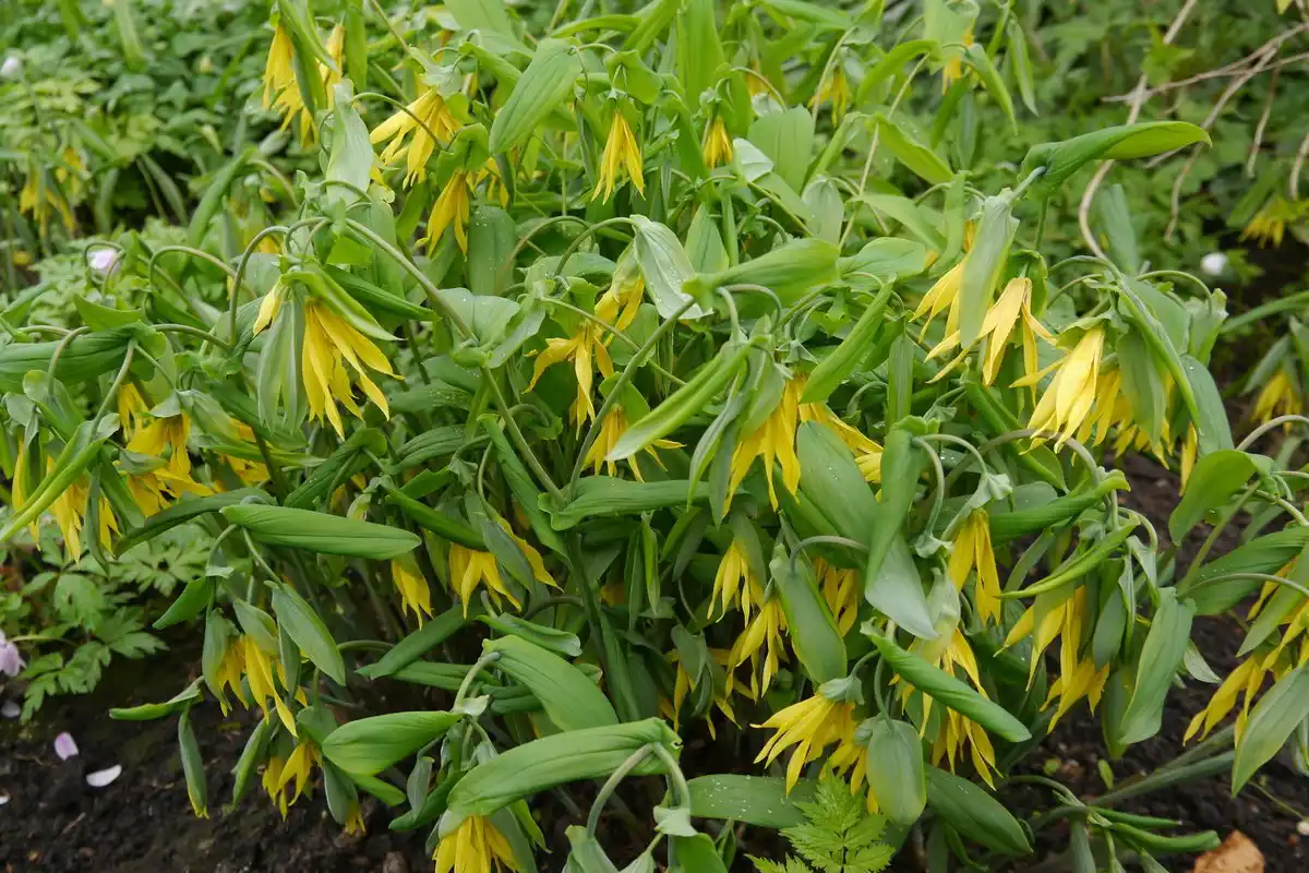 Прекрасно зимуюча під укриттям із сухого листя навіть у найбільш безсніжні зими, увулярія великоквіткова (Uvularia grandiflora) — одна з найвишуканіших весняноквітучих рослин для затінених місць саду.