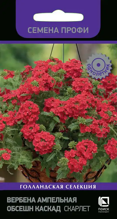 Перша ампельна вербена із насіння! У висоту кущ виростає до 15-20 см, а завширшки - до 45-60 см. Великі червоні суцвіття зберігають свою декоративність у саду тривалий час. Вербена рясно цвіте з червня до жовтня, стійка до борошнистої роси. Чарівно виглядає у підвісних кошиках, вазонах та балконних ящиках як монорослина, так і в комбінації з іншими рослинами.