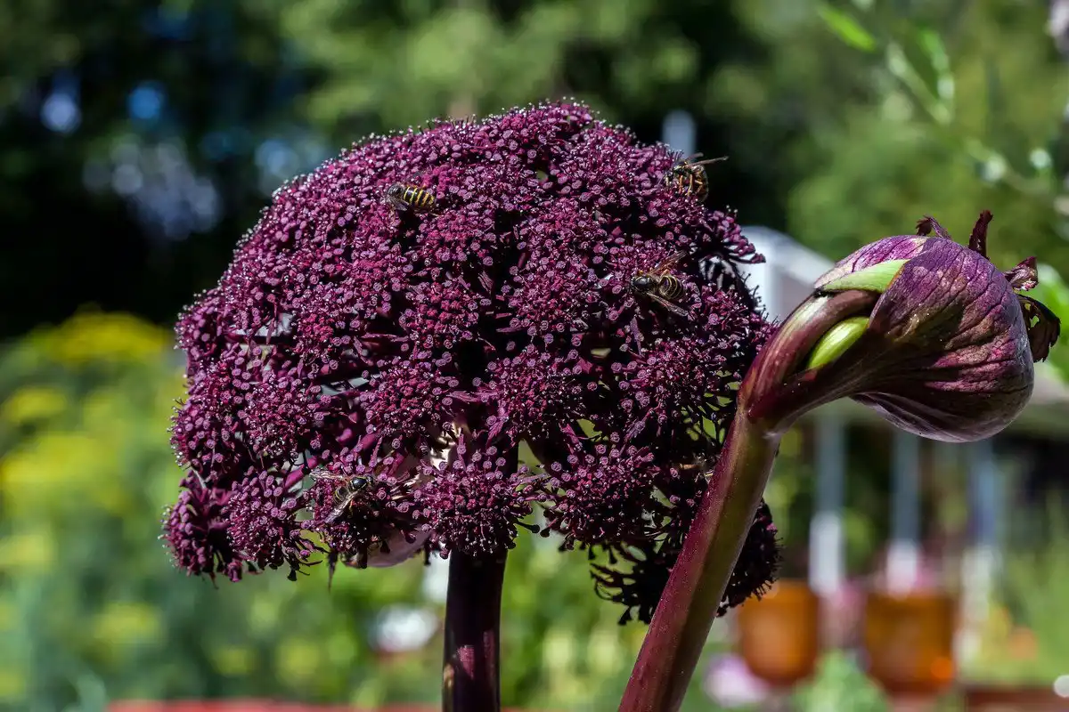 Дудник гігантський (Angelica gigas) - це фантастична архітектурна рослина, яка додасть будь-якому квітнику виразність і послужить відмінним тлом для інших рослин. Це справді справжній гігант, оскільки його висота може досягати 2,5 метра (в середньому 140-180 сантиметрів).