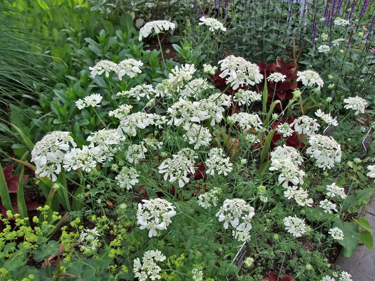 Орла великоквіткова (Orlaya grandiflora) - дуже ефектна парасолькова рослина, що прийшла до нас із Середземномор'я, де вона росте на виноградниках та в оливкових гаях. Орлаю прикрашає прекрасне різьблене листя, схоже на папороть, і численні парасольки чисто білих або трохи рожевих мереживних квітів, що нагадують шапки гортензій.