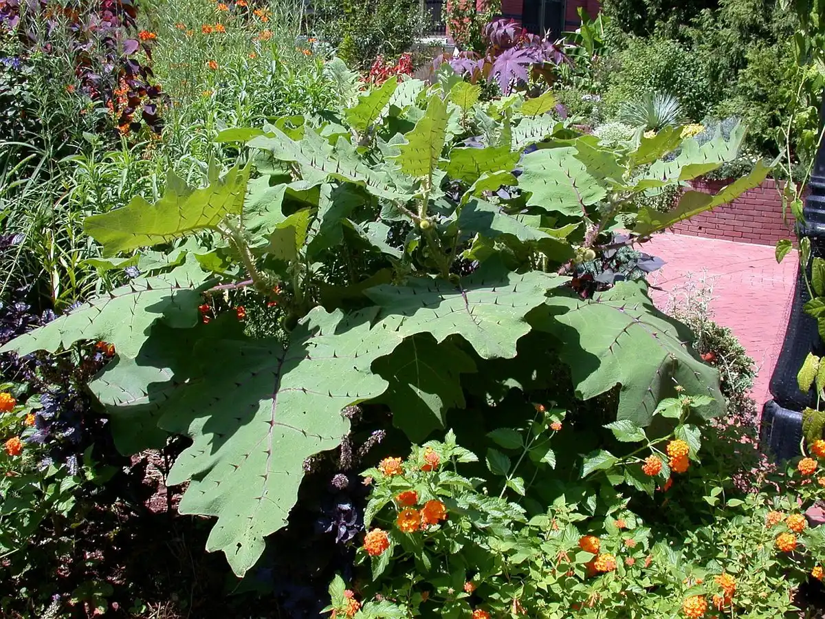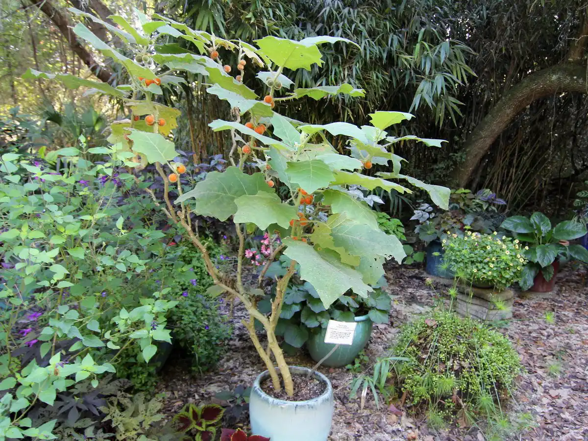Наранхілла - багаторічний (4-5 років) розлогий трав'янистий чагарник заввишки до 1,5 м-коду. Її товсті, частково одерев'яні стебла досить крихкі. Корінь потужний. Великі довгасті різьблені листя довжиною близько 30 см, прикрашені добре вираженими прожилками та волосками фіолетового кольору. Але якщо наранхілу вирощувати в теплиці, її листя може досягти 90 см завдовжки і цілих 80 см завширшки!