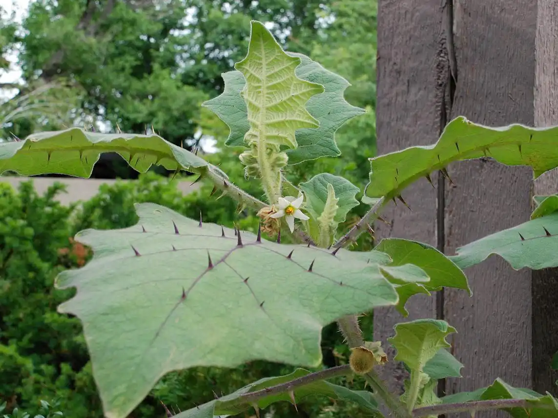 На листі височіють не часті, але виразні колючки. У фіолетове опушення прикрашені і черешки листя, і бутони, і чашки квіток.