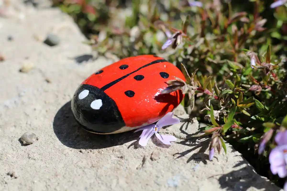 Ось і все! Наше сонечко готове! За бажання можна намалювати кам'яному сонечку ще й вусики. Можна зробити її без роздільної смужки на спинці, перетворивши на смугастого жучка. Якщо форма камінчика дозволяє, замість сонечка, можна зробити милу гусеничку або черв'ячка!