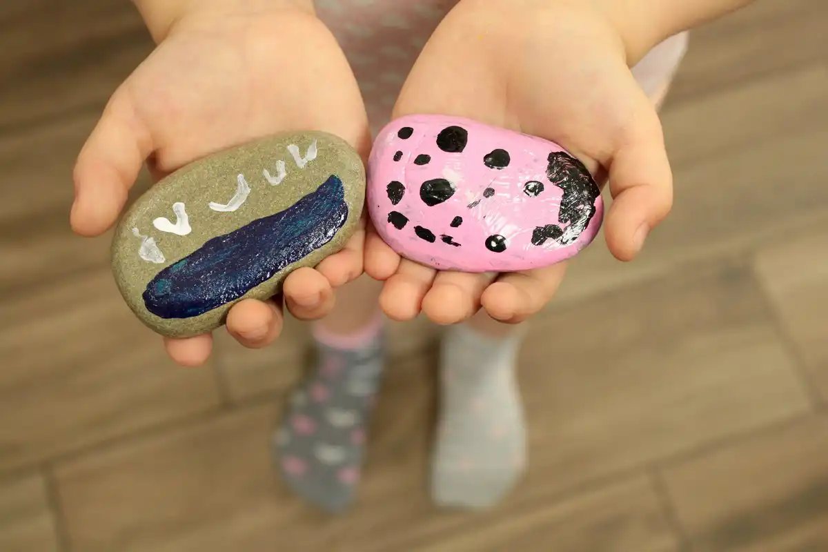 Маленьким дітям цікавіше малювати без попередніх начерків. Зазвичай вони малюють на камінчиках море, дерева чи просто якусь абстракцію. Таке заняття розвиває в них впевненість та здатність бачити та створювати красу.