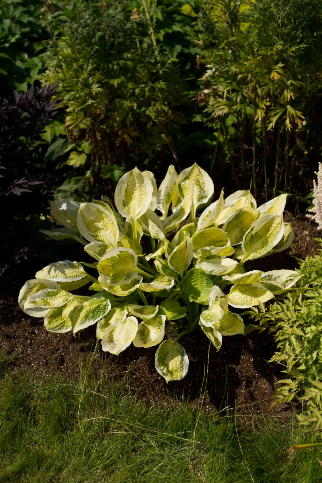 Більш лояльні до сонячного світла хости з кремовою (жовтою) облямівкою або серединою листа — їхній виразний малюнок повною мірою проявляється лише за достатнього освітлення. Зверніть увагу на сорти: