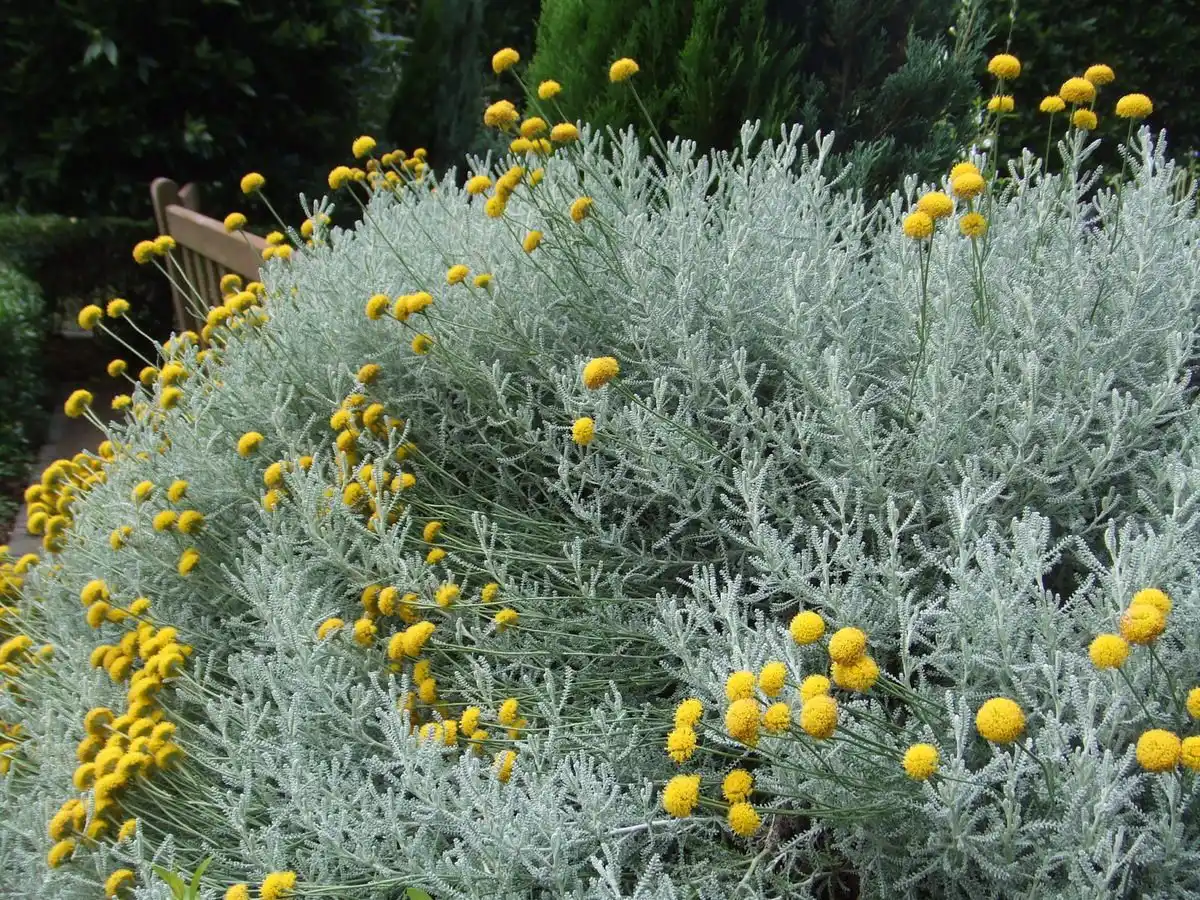 - По-своєму гарна сантоліна неаполітанська (Santolina neapolitana), що досягає до 1-го метра у висоту і до 2-х метрів у діаметрі.