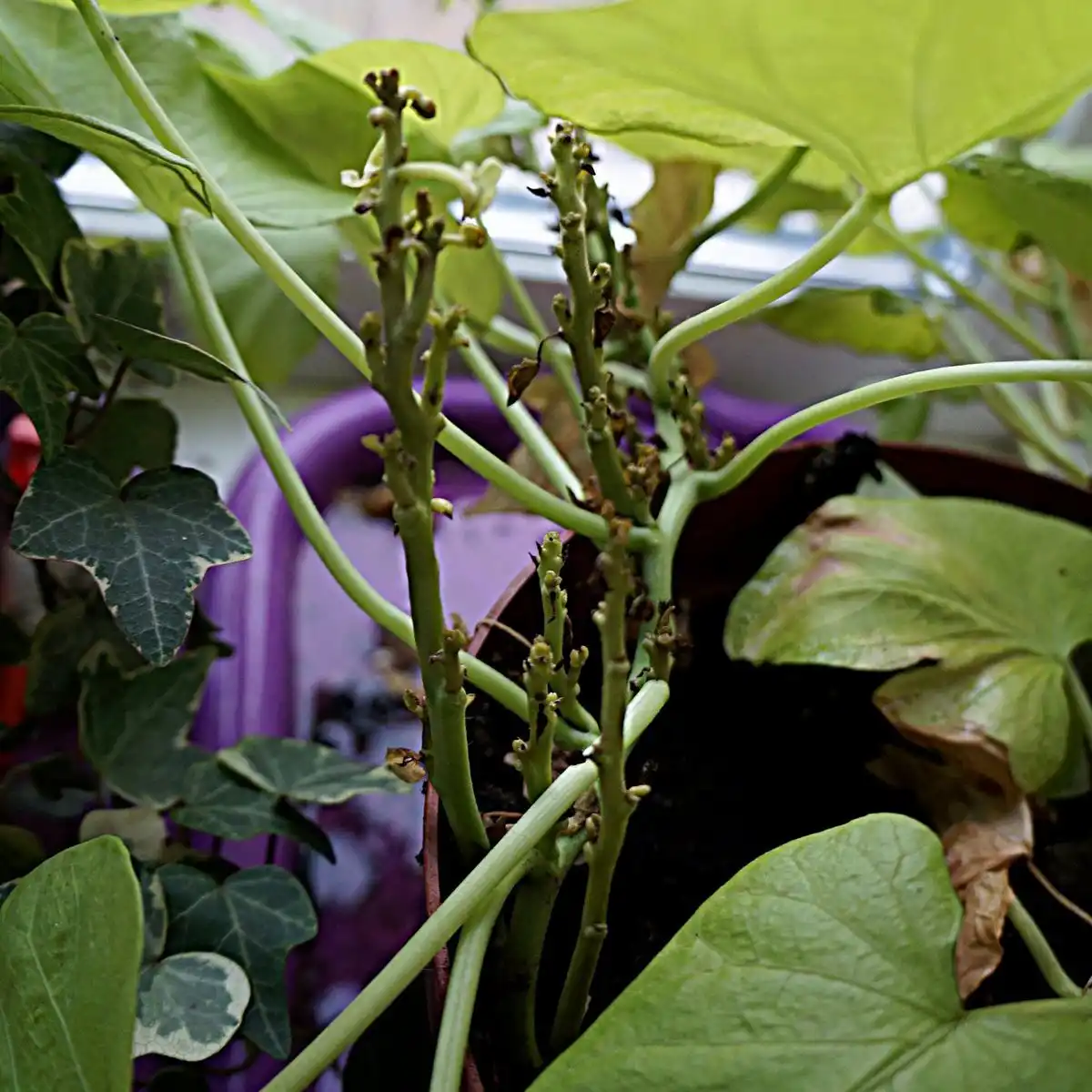 На власні очі мені довелося неодноразово спостерігати вірус мозаїки (строкате листя), вірус кучерявості та вірус, що викликає зміни забарвлення листової пластинки у вигляді окремих секторів, пофарбованих у незвичайні відтінки зеленого. Останній я наївно вважала якоюсь генетичною особливістю, що виникає у гібридних рослин, тому що вірус, в принципі, не заважав рослинам повноцінно розвиватися.