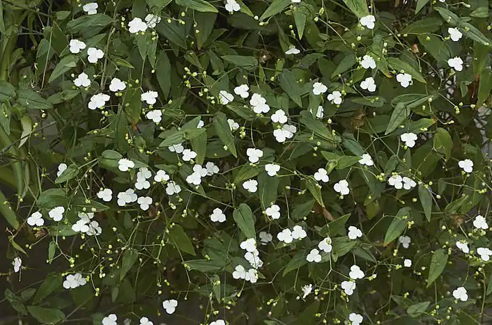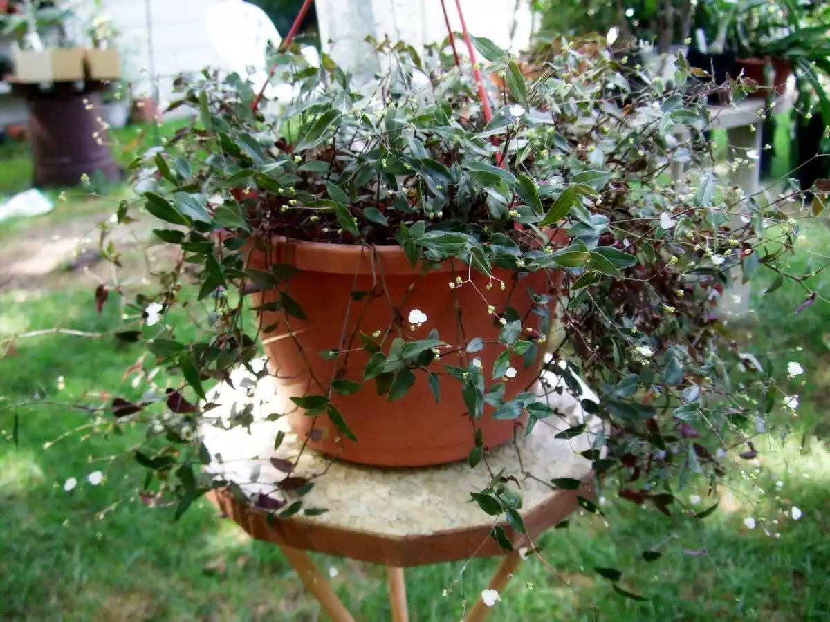 Зокрема, вигляд, що мене зацікавив, — це гібазис колінчастий (Gibasis geniculata). На Заході ця квітка має народні назви.«весільна фата» або «таїтянська фата» (Tahitian Bridal Veil). Вони прижилися тому, що практично цілий рік рослина усипана крихітними білими квітами на тонких ажурних квітконосах, що утворюють мереживний вуаль на тлі темного листя.