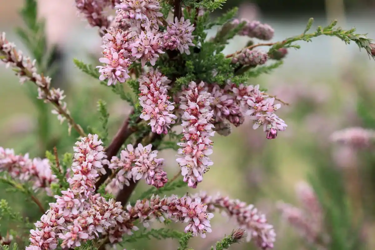 Мирикарія лисохвостникова (Myricaria alopecuroides)у різко континентальному кліматі успішно замінює тамарікс. Делю привезла мені колега по роботі з порадою посадити в сухому і сонячному місці. Сухом-то запросто, а от сонячне зайняте грядками, трояндами та лілійниками. І оселилася моя мирікарія на сухому суглинку в півтіні поруч із блакитними хостами. Поєднання вийшло дуже цікавим: ніжно-повітряні гілочки мирікарії між широким грубуватим листям великих хост.