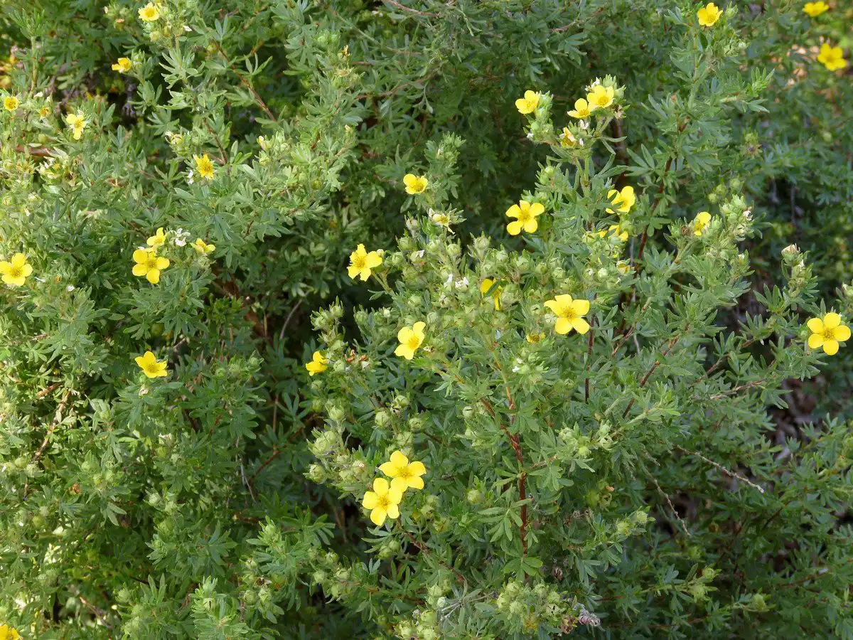 Теж ось рослина, що тішить своєю невибагливістю та тривалим цвітінням в умовах Півночі з кінця червня до жовтня. Кущик у мене вийшов маленький, не вище 40 см, округлий, з жовтенькими невеликими квіточками життєрадісного сонячного вигляду. Не обмерзає, тримає форму та цвітіння, догляд полягає у висмикуванні високорослих бур'янів. З деякими низькорослими, наприклад, веронікою ниткоподібною - виглядає досить органічно.