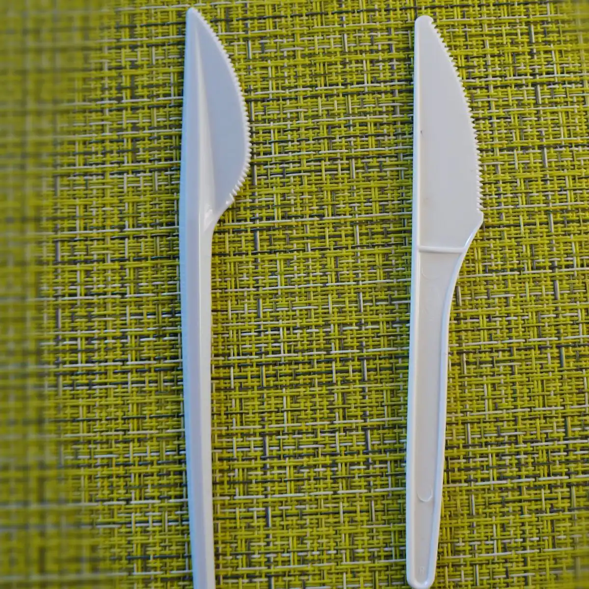 Також не дуже зручні ножі з глянсовою поверхнею, оскільки на них погано тримаються написи. Крім того, пластиковий посуд робиться з дуже тендітної тонкої пластмаси, і ножі дуже легко ламаються. Тому ідеальний «ніжок-бірку» доводиться ще пошукати.