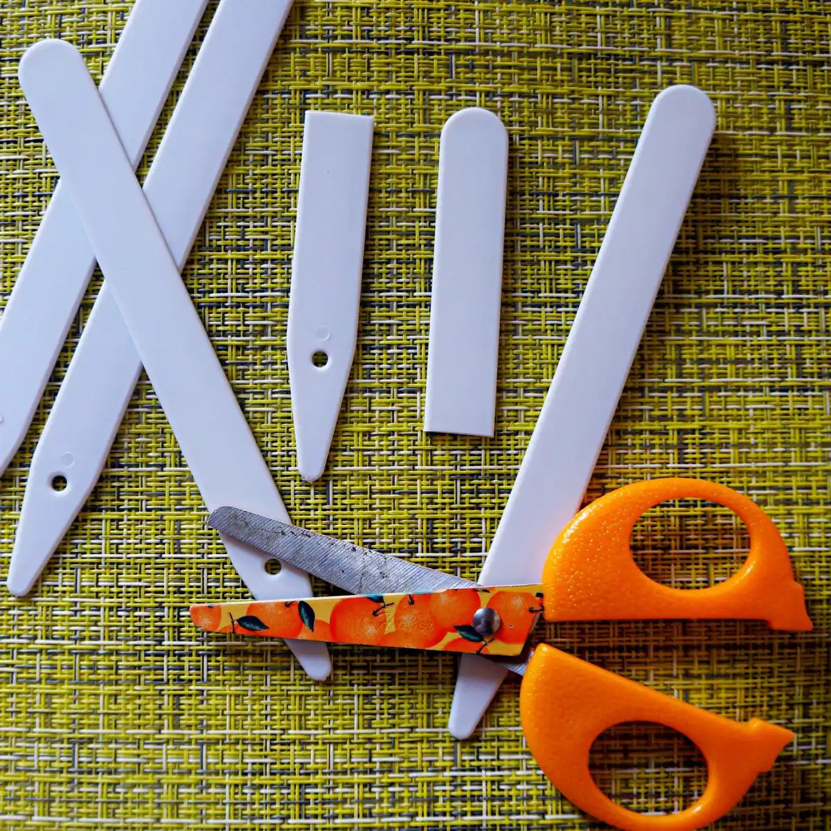 Якщо у вас на дачі або в офісі завалялися поламані пластикові горизонтальні жалюзі, це стане ідеальним матеріалом для виготовлення абсолютно безкоштовних і дуже зручних ярликів, які можна застосовувати як для розсади в приміщенні, так і для маркування посадок у відкритому грунті.