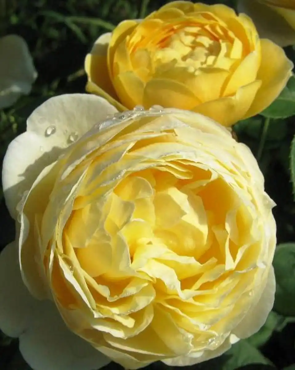 Квітки поблизу дуже красиві: кожна є куля з дрібних яскраво-жовтих пелюсток, оточених блідо-жовтими зовнішніми пелюстками, що плоско лежать. Гармонійно поєднує у собі старовинну форму квітки та сучасні вимоги до троянд. Аромат приємний.