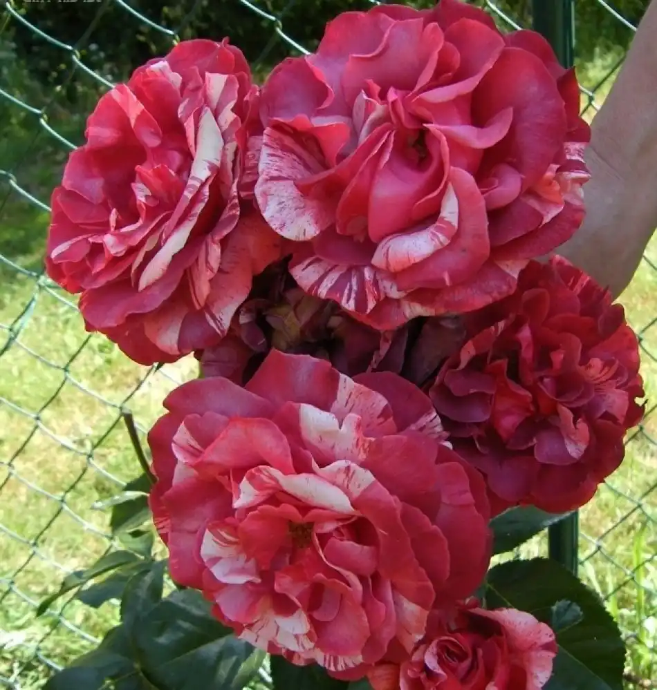 Повторно квітучий сорт відрізняється рясним цвітінням. Пелюстки зсередини мають темно-червоне (гранатове) забарвлення, зовні відтіняються білою підкладкою. Квіти махрові (7-9 см), з легким ароматом, з суцвіттями по 3-7 штук на квітконосі, але можуть бути по одному на міцному стеблі.