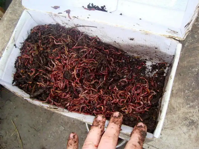 Одну шухляду потрібно застелити плівкою і засипати до половини городньої землею з спійманими хробаками. Додатково набрати ще пару цебер землі, без хробаків. Можна землю і черв'яків набрати в лісі разом із прілим листям. Земля має бути вологою, але не мокрою. У ящик з хробаками додати грамів 200 подрібнених органічних відходів (очищення, спиту чайну заварку, бананові шкірки тощо), перемішати.