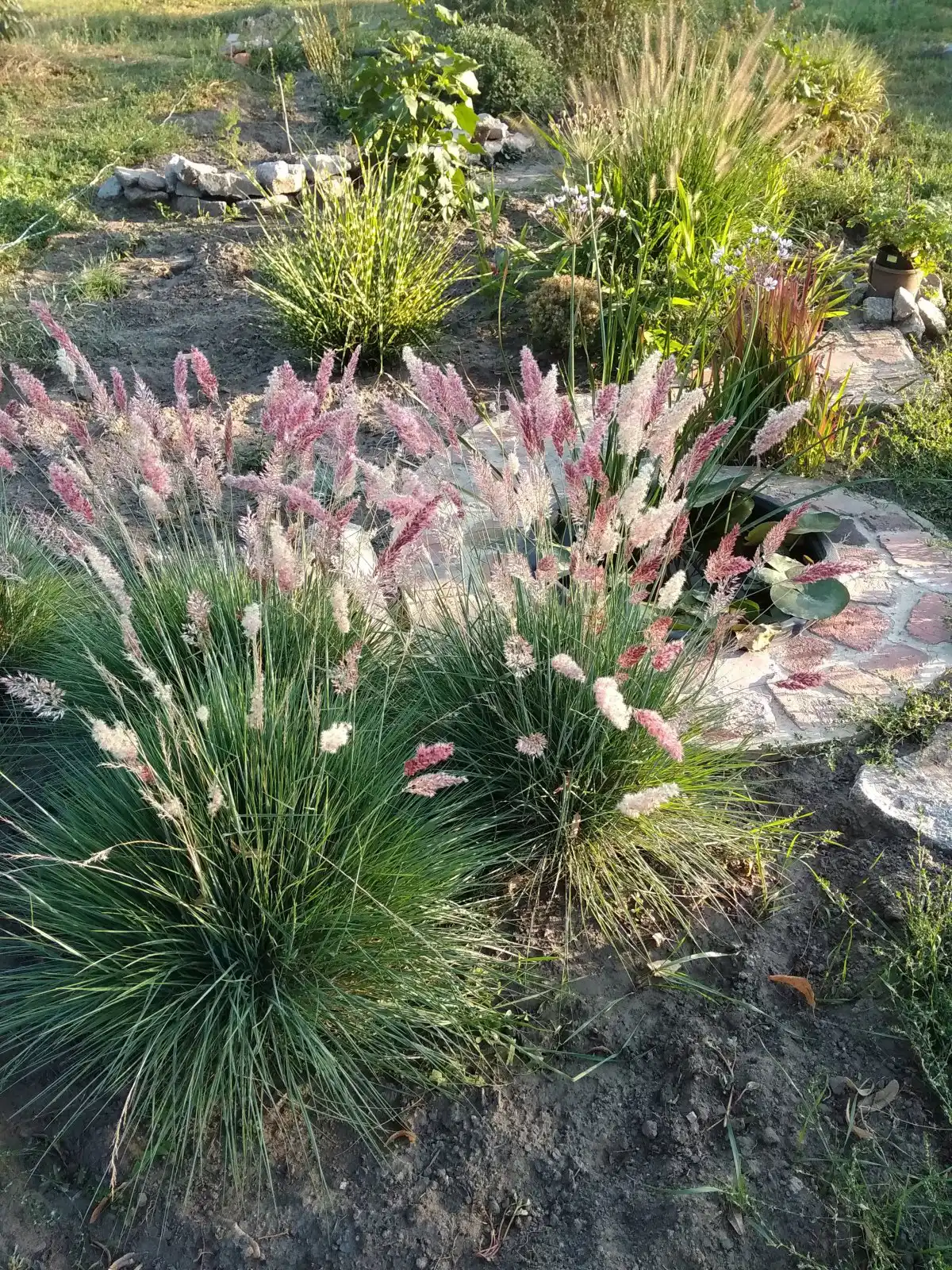 Мені здається, що з такими маленькими розмірами він буде безглуздо виглядати в оточенні дерев і навіть середнього розміру чагарників, а ось декоративні трави – саме те.