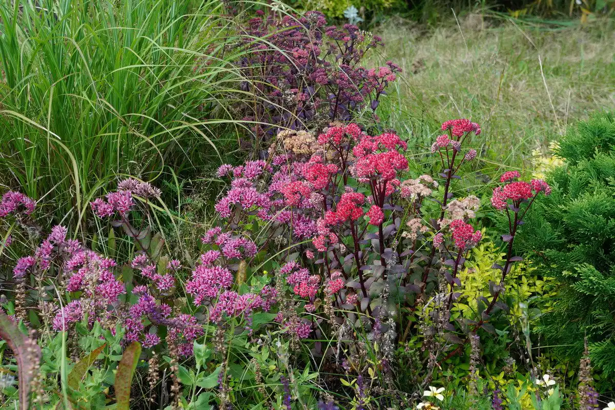 Кущові очителі - чудові компаньйони для декоративних трав, які якраз зацвітають восени, тому дуже складно собі уявити сучасний міксбордер без використання кущових видів очищника різних сортів.