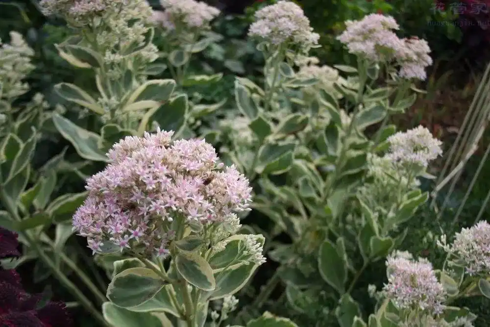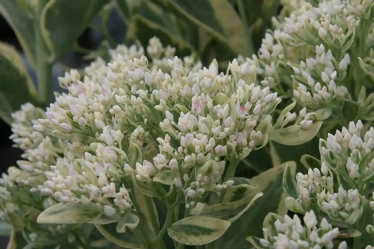 У деяких сортів очитника біло-рожевого облямівка або середина також має ніжно-рожевий колір, який з віком змінюється на білий. буває злегка хвилястою. Цвітіння очитника біло-рожевого часто буває більш раннім, ніж у інших кущових видів очитника.