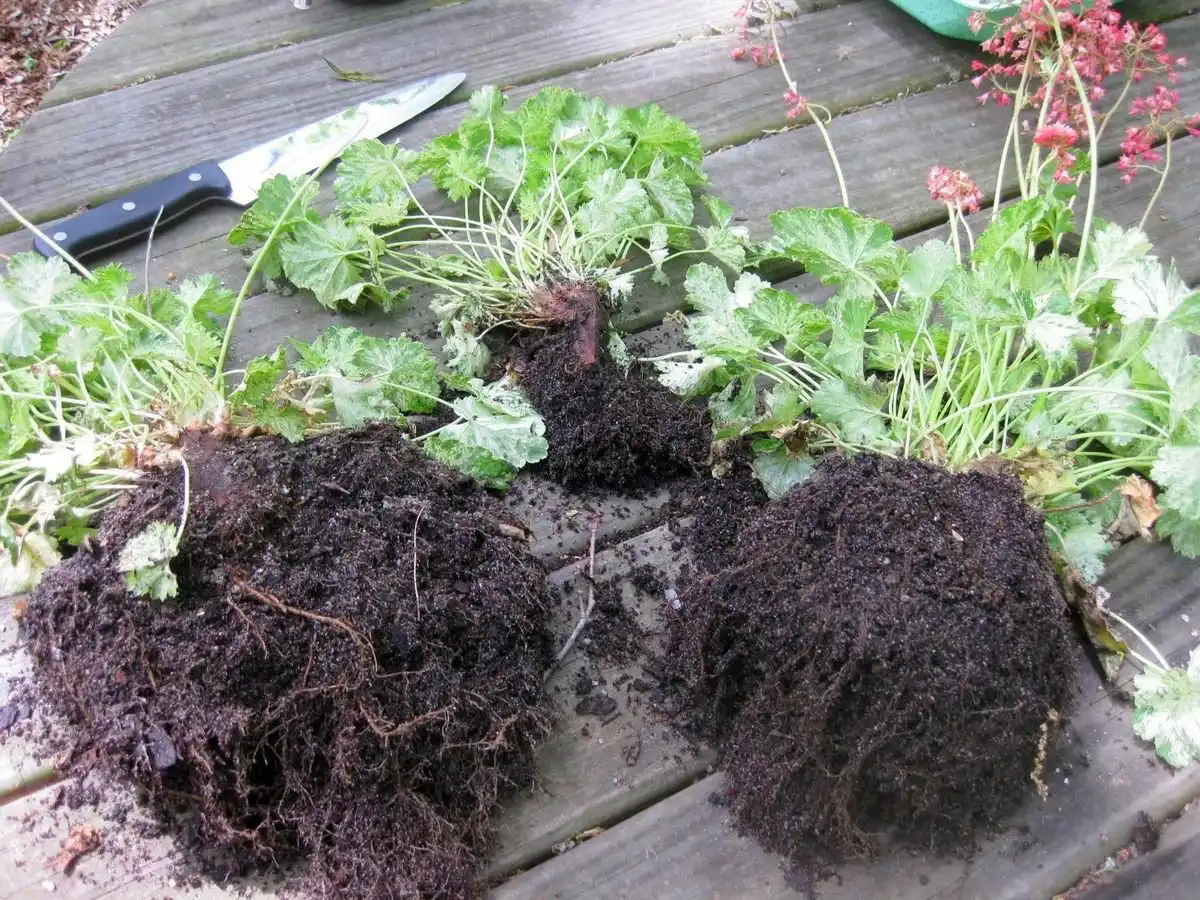 Гейхери та гейхерели дуже легко діляться і добре приживаються. Відокремте гострою лопаткою ділянку з двома-трьома розетками, занурте в порошок кореневіна, якщо при розподілі порушилося коріння, і висадіть на нове місце. Ваша турбота – тільки щоб ґрунт не пересихав.