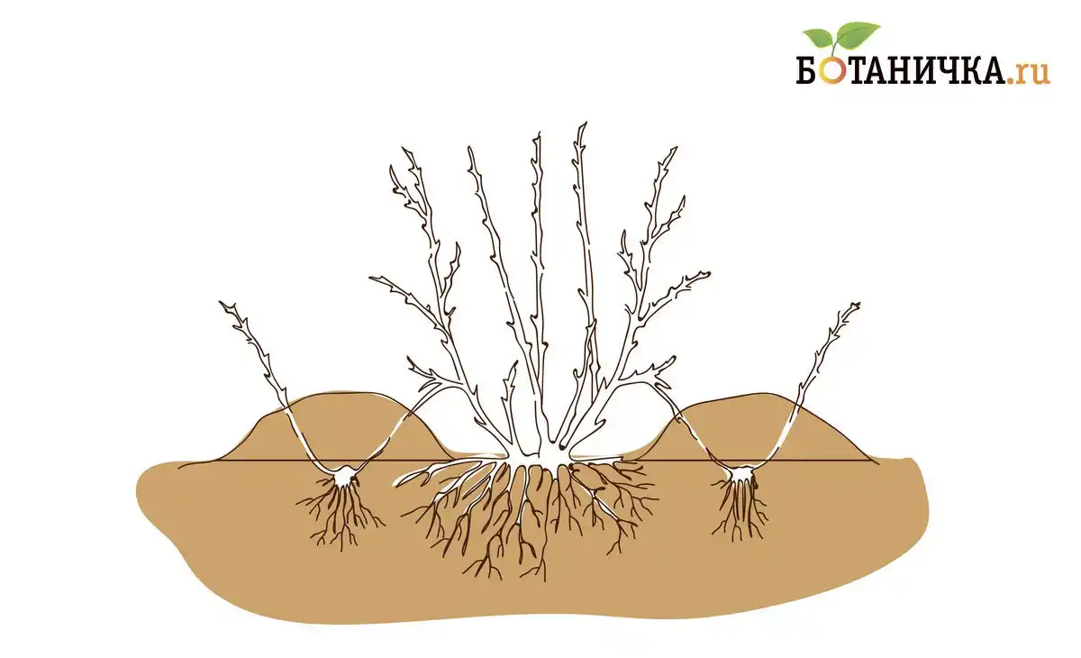 Якщо у вас на ділянці підвищена вологість, то замість канавки можна зробити горбок із перегною, змішаного із землею над пришпиленою гілкою (Рис. 1, Б).
