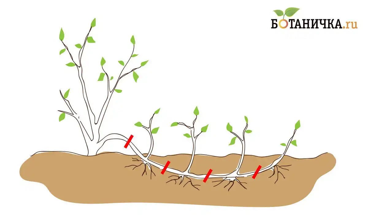 А відведення іноді виходять навіть самі собою, якщо гілки нахиляються надто близько в землі. Тому перш ніж починати розмноження відводками, перевірте, чи немає у вас готових вкорінених відростків?
