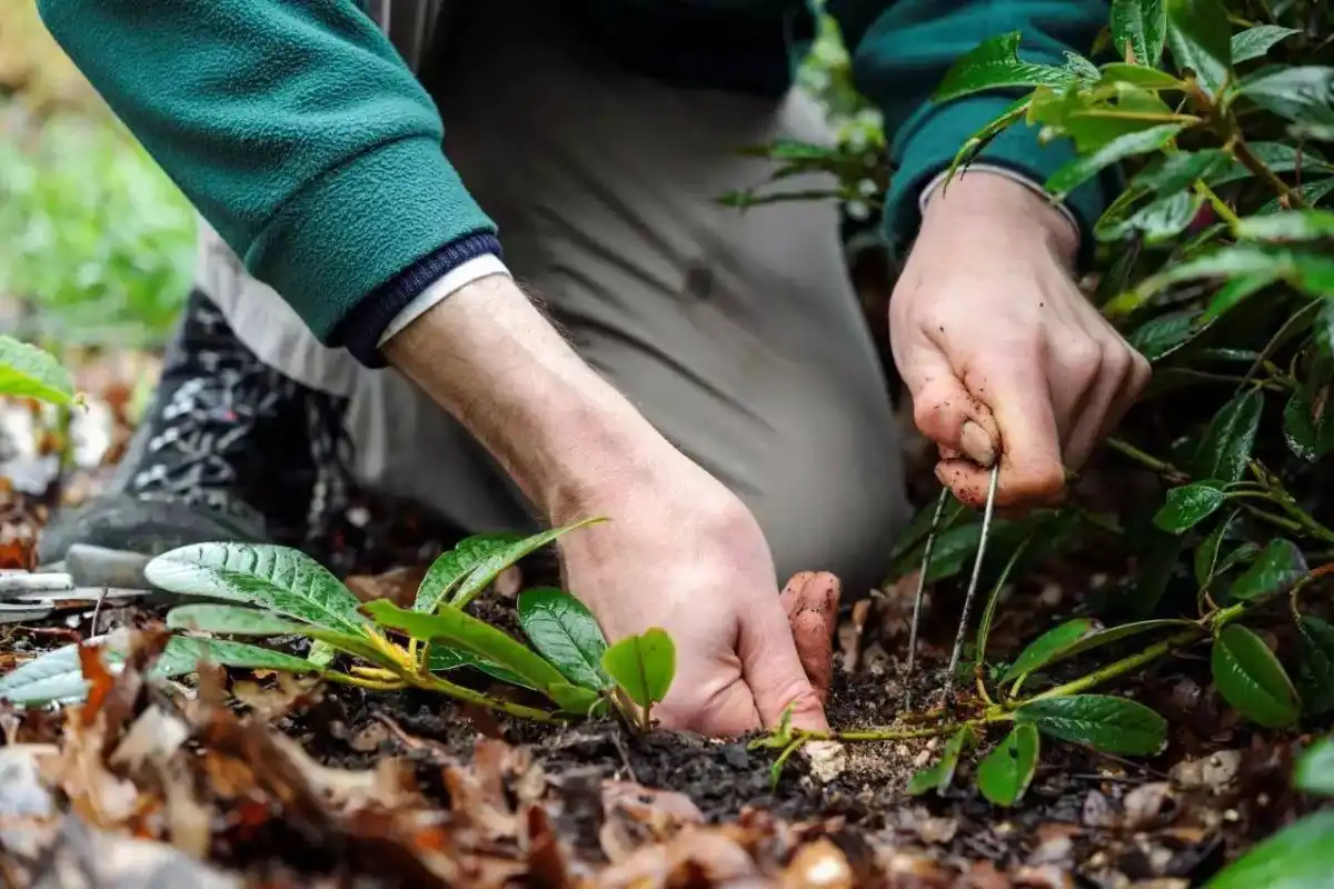 Листя також видаляють лише у тому місці, яке призначене для укорінення. Можна також трохи перетягнути, щоб стимулювати коренеутворення, трохи обмеживши харчування від материнського куща або зробивши кільцювання кори та надріз.